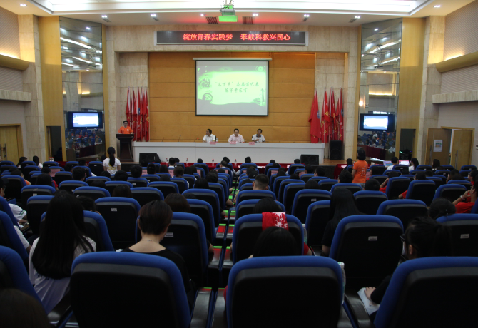 (本网讯)为深入贯彻落实国家关于开展暑期“三下乡”社会实践活动的要求,推动“科技、文化、卫生”入基层,引领广大青年学生自觉树立和践行社会主义核心价值观,6月30日上午,学校在图书馆四楼学术报告厅举行2017年暑期“三下乡”社会实践活动出征仪式。党委书记肖湘愚,校长伍中信,各二级学院党总支副书记、团总支书记,“三下乡”全体志愿者参加出征仪式。仪式由副校长王焕清主持。