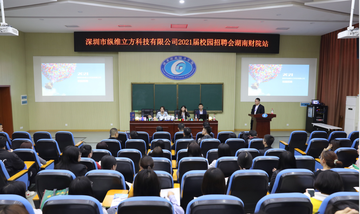 肖湘愚对深圳市纵维立方科技有限公司来我校招贤纳才表示热烈欢迎。他表示,公司发展非常迅速,正在筹备上市,前景非常广阔,同学们去公司工作发展大有前途。公司两位创始人——我校校友欧阳露、邓琳夫妇创业后回到母校,为母校毕业生持续不断地提供实习和就业机会的举措值得赞赏,学校也将和深圳市纵维立方科技有限公司等优秀校友企业签订长期战略合作,继续为毕业生的成长成才建立更多优质的实习就业基地,为校友企业的长远发展提供智力支撑。