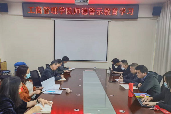 (本网讯)4月14日下午,工商管理学院在办公楼四楼会议室召开师德警示教育学习大会。会议由学院党总支书记郭丽主持,学院领导班子全体成员、全体行政人员及部分无课教师参加。
