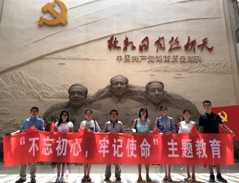 (本网讯)为纪念中国共产党成立97周年,持续开展“两学一做”学习教育,6月29日上午,数学与统计学院组织全体党员来到湖南党史陈列馆,开展“不忘初心,牢记使命”主题党日活动,重温党的历史,缅怀革命先烈,接受党性教育。该院院长吴建国、副院长范国兵、党总支副书记杨艳、教科办主任赖小红、行政党支部书记易好及教师党支部成员参加了此次活动。