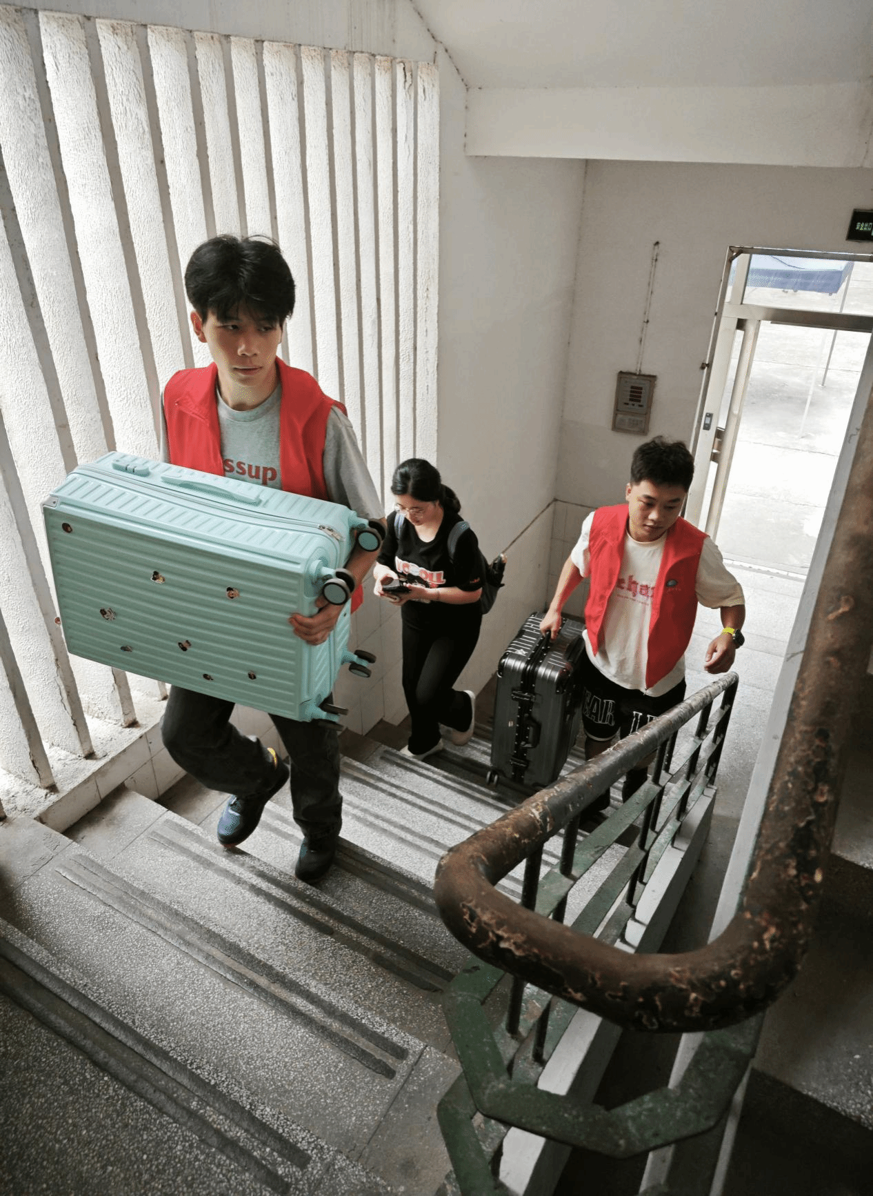 9月11日,经济地理学院2025级迎新工作拉开帷幕。学院师生党员志愿者主动投身迎新一线,开展“党员先锋岗”志愿服务。在学院领导班子带头下,党员服务队活跃于报到点、宿舍区、咨询台等场所,全程协助新生办理报到手续,为新生提供路线引导、行李搬运、政策解答等贴心服务,为新生和家长搭建起沟通桥梁,让初入校园的新生感受到温暖与关怀。烈日当空,党员志愿者们不辞辛劳、主动靠前,以实际行动践行初心使命,让党徽在服务一线闪耀,赢得了新生和家长的广泛赞誉。
