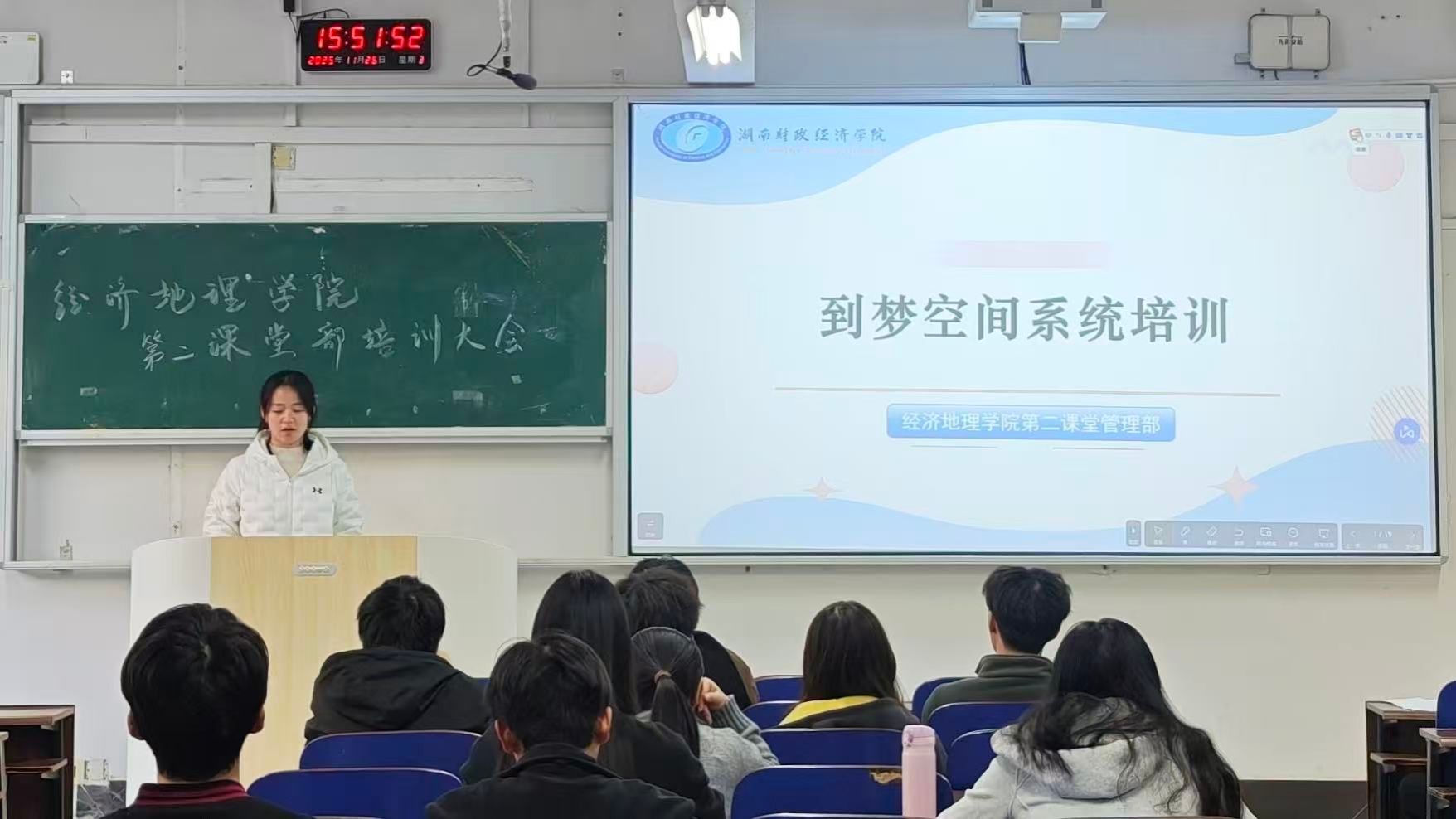 (本网讯)11月26日下午,经济地理学院第二课堂管理部在主校区3103教室成功召开“到梦空间”系统操作培训会。本次培训由第二课堂管理部部长李昕怡主持,旨在规范平台使用流程,团学会各部门及各班级学生代表参加了会议。