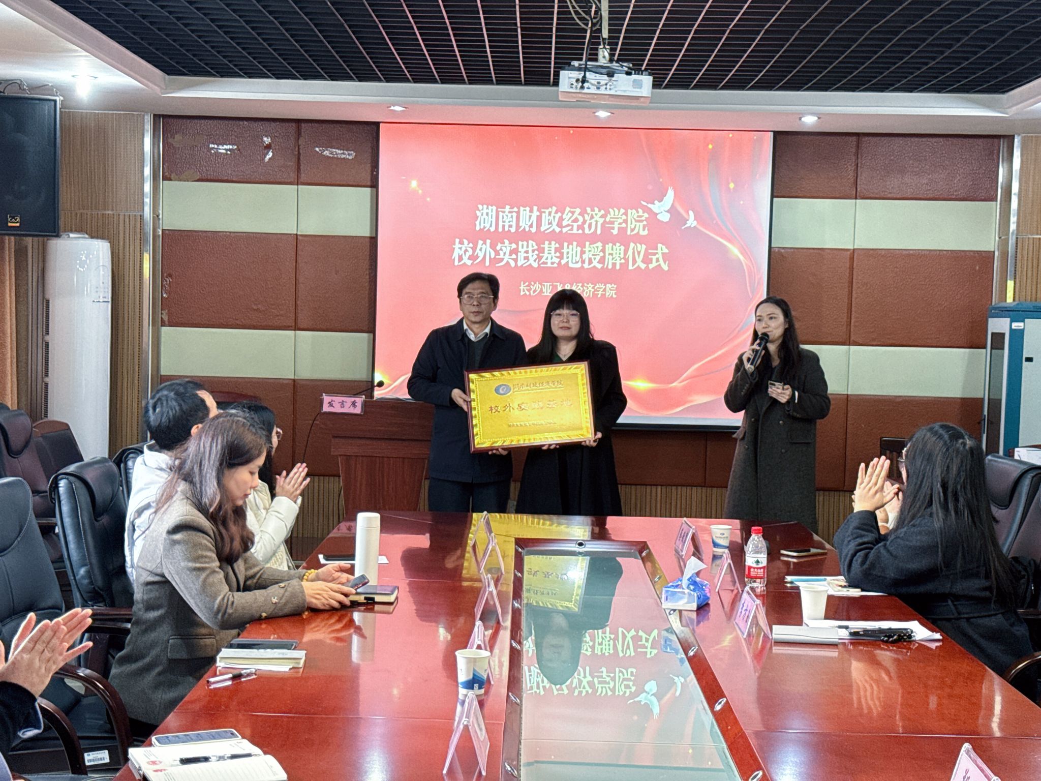 (本网讯)3月31日,经济学院与长沙市亚飞科技有限公司联合举办的校企合作订单班结业仪式暨现场招聘面试会在1014会议室顺利举行。学院党政班子、系主任、专任教师代表、企业代表参加了活动。