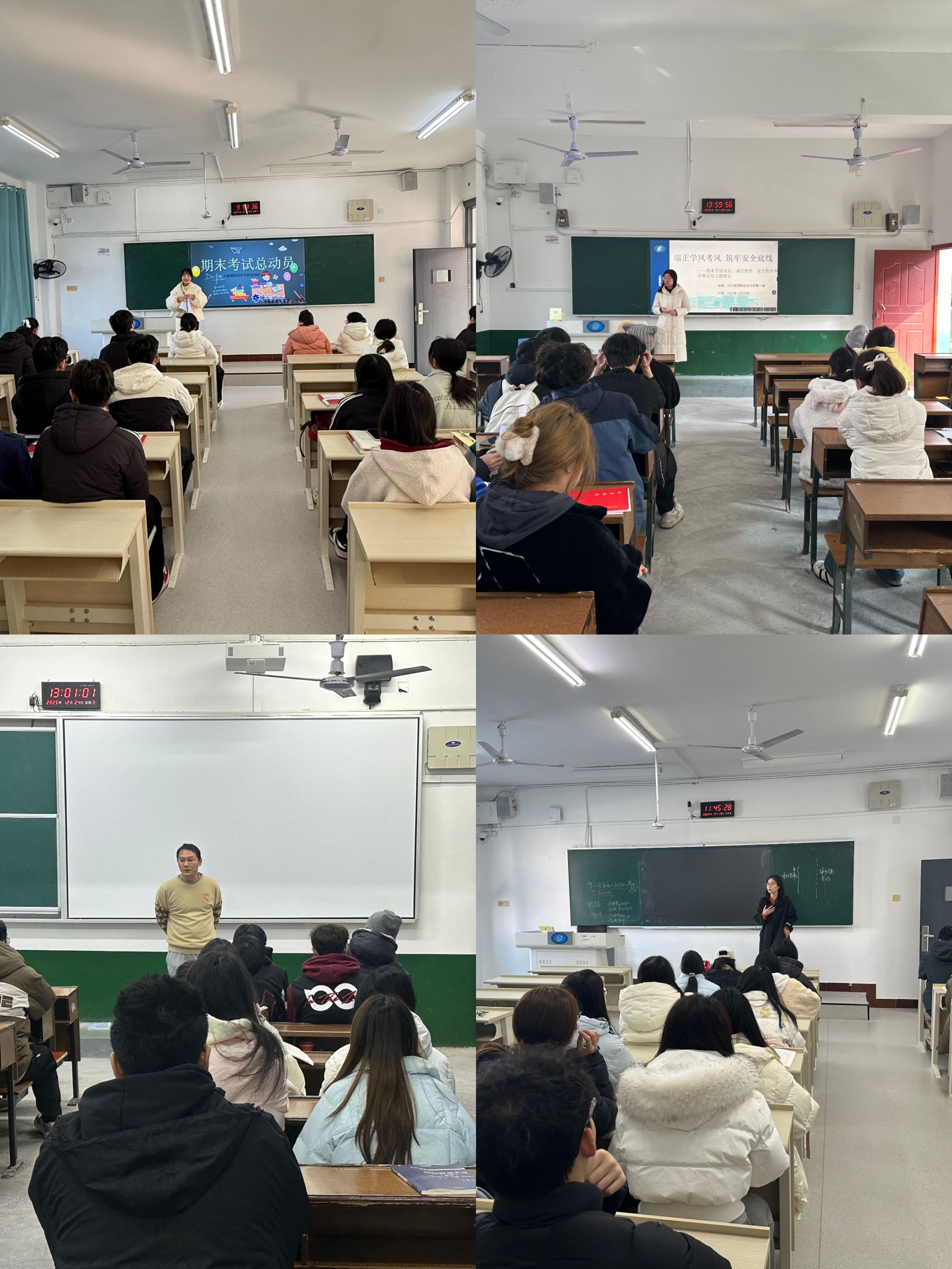 此次系列班会通过辅导员与班主任协同施策,为学生厘清复习方向、绷紧纪律之弦,强化了安全与责任意识。下一步,学院将持续跟进学风考风建设落实情况,保障期末考试公平有序开展,助力学生以扎实学识和诚信态度交出满意答卷。