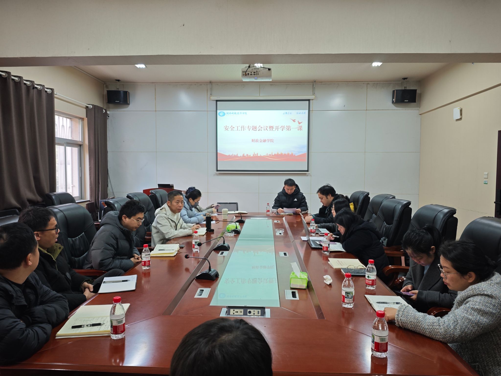 近日,财政金融学院召开安全工作专题会议暨安全教育“第一课”。学院党委书记肖燕飞、全体辅导员、班主任参会,会议由学工办主任易好主持。