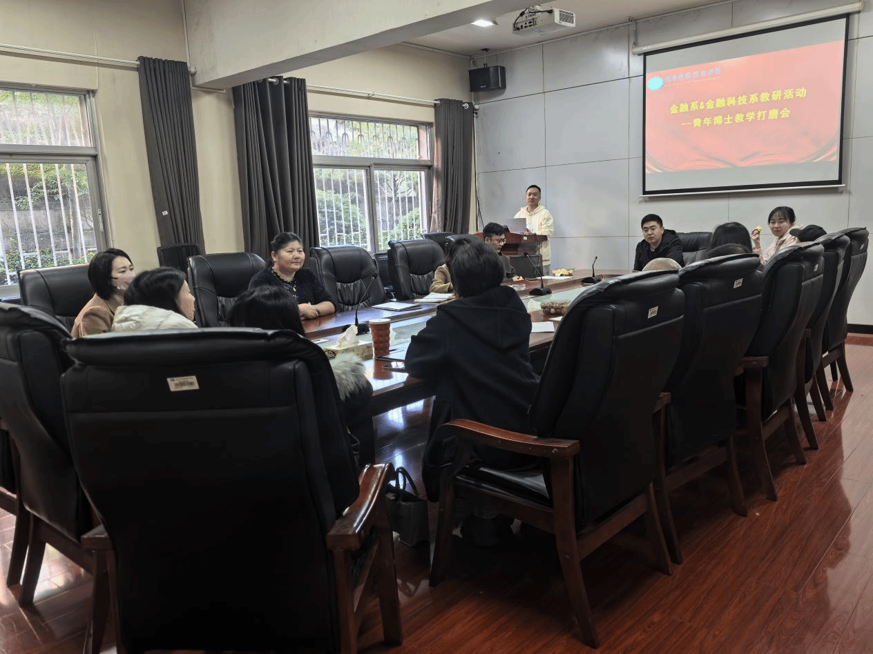 2025年11月19日下午,为系统提升青年教师教学水平,促进课堂教学质量不断进步,我院金融系与金融科技系在119办公室联合举办青年博士教学磨课活动。金融系主任马淑姣、金融科技系主任王娟及两系多位教师共同参与。活动现场 王娟/摄本次活动由青年教师杨俊博士进行教学展示。杨俊老师以《行为金融学》为核心内容,完整呈现了一节课堂教学。他在教学结构设计、逻辑推进、案例分析与课堂互动等方面均表现出色,课程讲解层次清晰、节奏流畅,...