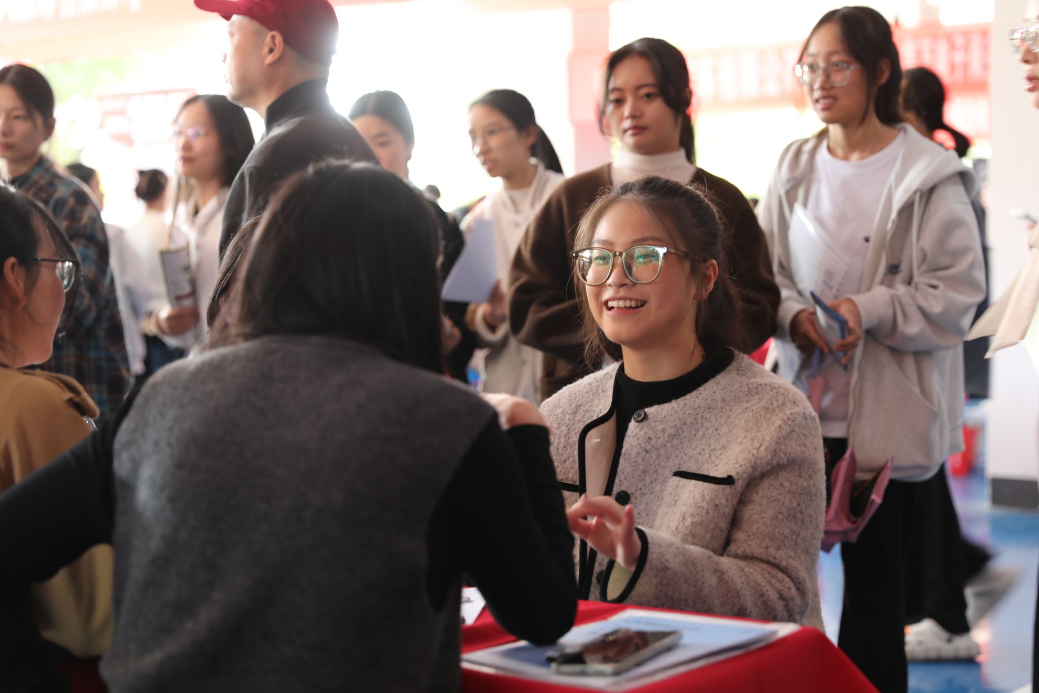 双选会现场气氛热烈,青春涌动。数千名毕业生穿梭于各企业展位之间,积极与招聘代表交流,详细了解岗位要求、职业前景及薪资待遇。用人单位耐心解答同学们的疑问,主动介绍企业优势与发展规划。