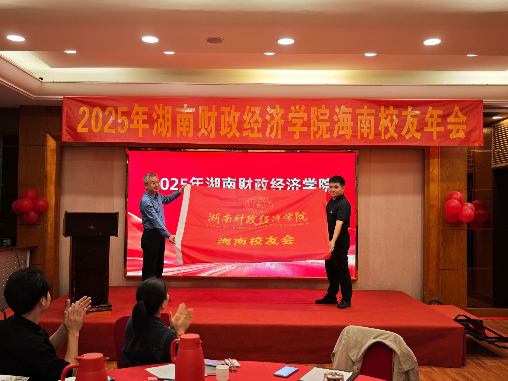 在海南校友分会换届大会现场,刘钟理为新任分会理事会主要成员郑重颁发聘书,并代表学校授予分会会旗——这一仪式的举行,标志着海南校友工作正式开启高质量发展的新篇章。连任分会会长的2015届金融英语专业校友李健上台发言,他深情回顾了分会过往工作,明确表示将继续传承“感恩母校、服务校友”的初心,进一步完善交流平台建设,助力母校发展与校友事业共同进步。