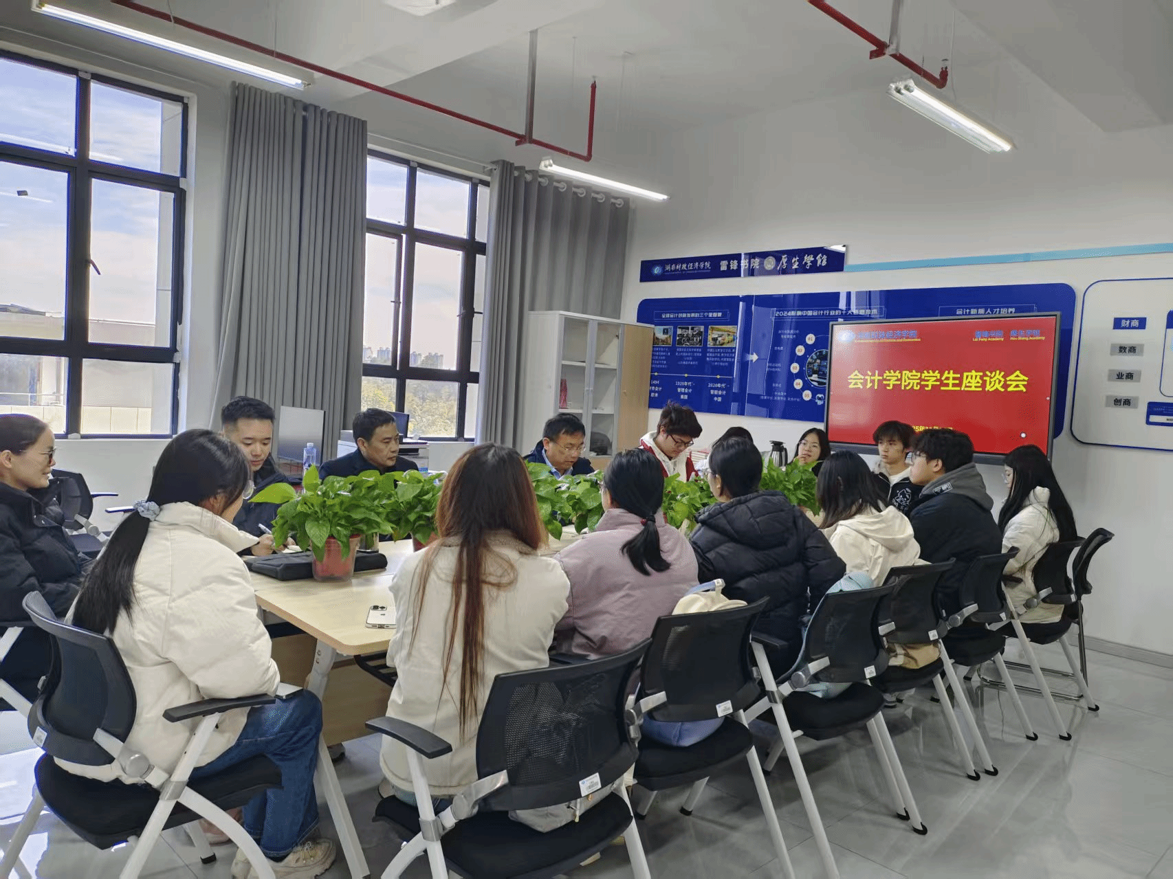 (本网讯) 为深入了解本学期教学运行实际情况,持续加强教学质量监控,优化教学管理服务,倾听师生心声,11月17-18日,会计学院在办公楼215会议室召开期中教师座谈会、在主校区和雷锋校区分别召开了期中学生座谈会,学院全体领导、教师代表、学生代表参加了座谈会。
