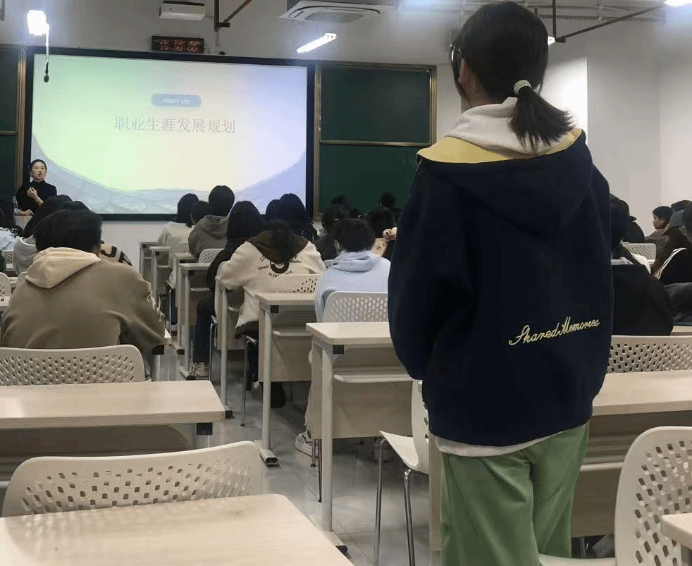 职业生涯规划环节,主讲人从基本概念、重要性、制定步骤和实施调整四个方面展开讲解。他指出,合理的职业规划能帮助个人明确方向、增强竞争力、实现自我价值,而制定规划需经过自我评估、职业探索、目标设定和计划制定四个关键步骤。在实施过程中,既要稳步执行计划,也要定期评估效果,根据自身情况和外部环境变化适时调整,确保规划的有效性和可行性。