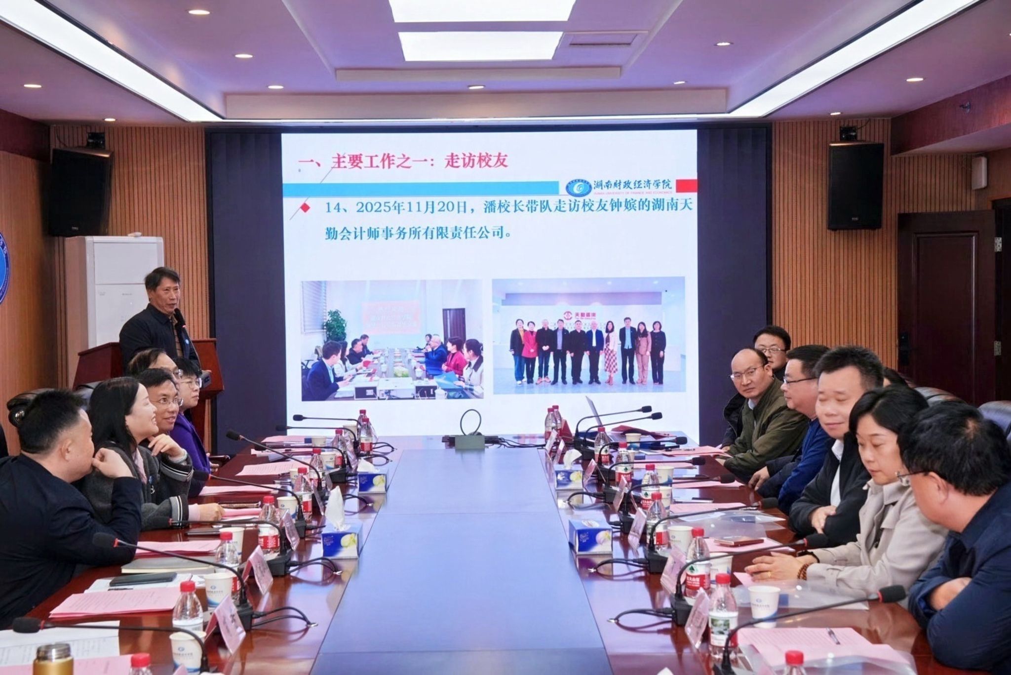 (本网讯)11月23日,会计学院校友分会年度总结大会暨校友座谈会于办公楼715会议室顺利举行。校党委委员、副校长兼会计学院院长潘爱民、创新创业与人工智能学院直属党支部书记兼校友总会会长余华、会计学院党委书记戴恩湘和35名校友代表欢聚一堂,共话师生情。会议由会计学院党委副书记肖芳主持。
