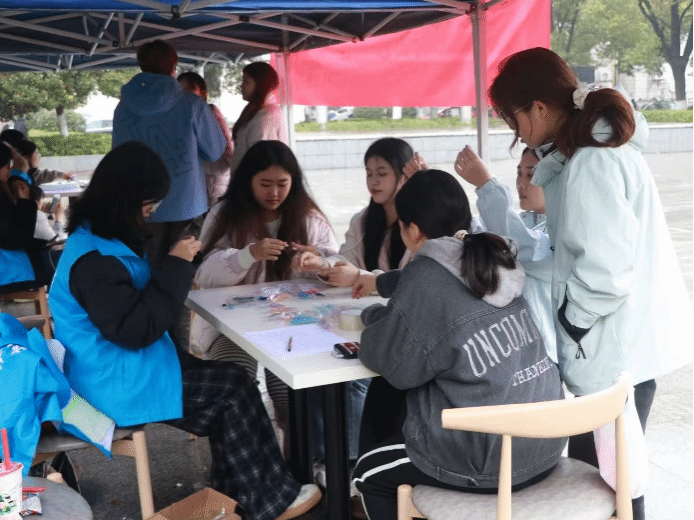 现场开设了趣味手作体验,丰富的珠串材料整齐摆放,志愿者耐心示范串珠技巧。同学们自主设计创作、互换作品、交流心得,在动手实践中传递雷锋精神,以温情手作拉近彼此距离。