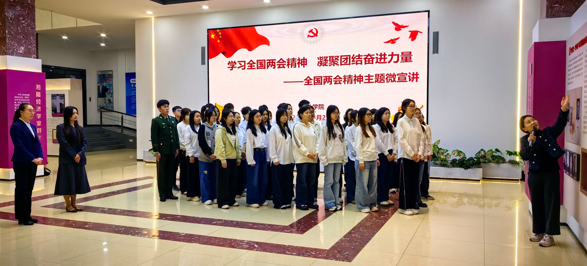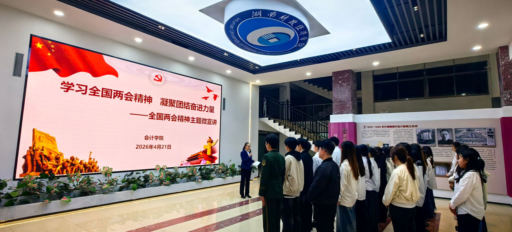 (本网讯)为深入学习贯彻2026年全国两会精神,引导青年学生将个人理想追求融入党和国家事业之中,4月21日中午,湖南财政经济学院会计学院在厚生风华育人基地开展“学习全国两会精神 凝聚团结奋进力量”主题微宣讲活动。院党委副书记肖芳、学工办主任蔡益华、院团总支书记管超男、师生联合党支部书记李敏及团学会全体学生参与本次活动。