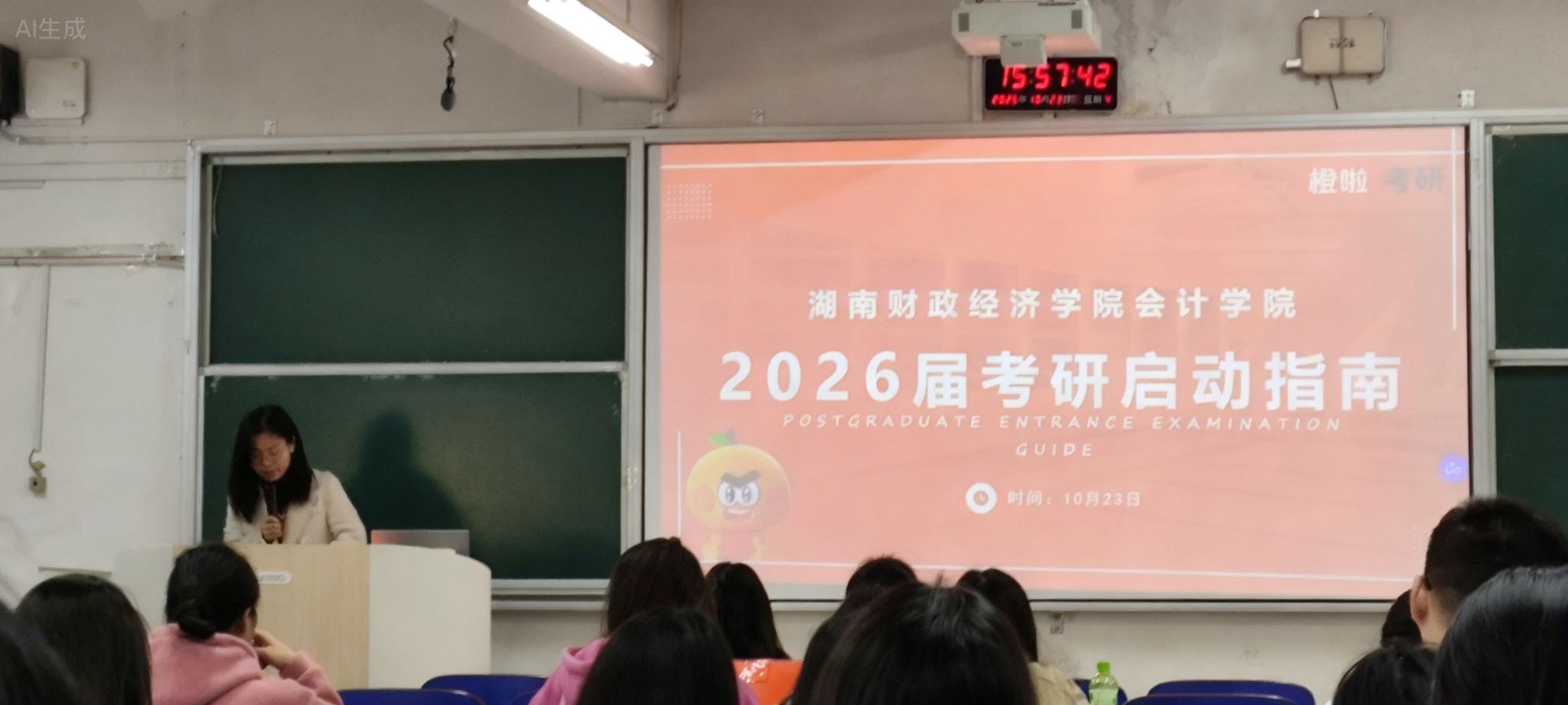 “凡事预则立,不预则废。”为帮助2026届学子明确考研目标、规划备考方向,破解初期备考困惑,湖南财政经济学院会计学院于2025年10月23日15:50在3210教室举办了2026届考研指导会。会计学院党委书记戴恩湘、会计学院副院长杨晓辉(主持工作)、学工办主任蔡益华出席本次指导会。会计学院百余名有志考研的学子到场聆听,共赴这场“研途”启蒙之约。