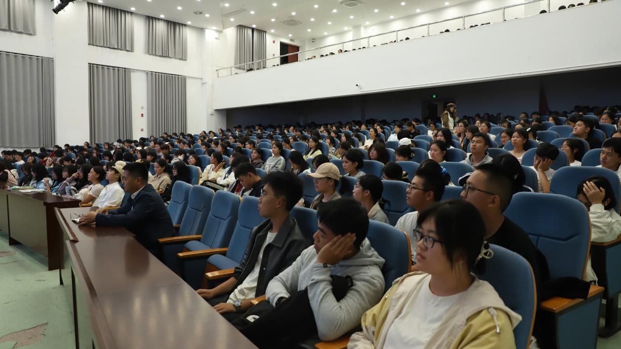 刘立勇教授首先以长沙深厚的历史文化和红色旅游资源为切入点,结合毛泽东的生平事迹,从“初心启航、探求真理,做追梦者”、“学习伟人、砥砺前行,做奋斗者”等方面展开讲述,用热情洋溢、幽默风趣的语言为大家讲述了青年毛泽东“立奇志、交奇友、读奇书、创奇事”的革命故事,带领大家一起回顾了毛主席在第一师范的求学时光以及他如何踏上革命征途的辉煌历程。激励同学们从革命先辈的奋斗故事中汲取精神力量,明确新时代大学生的责任与担当。最后,刘立勇教授以“撸起袖子加油干,扬帆奋进正当时,奋起逐浪向未来”寄语全体同学,鼓励大家坚定理想信念,勇担时代使命,为实现中华民族伟大复兴的中国梦贡献青春力量。