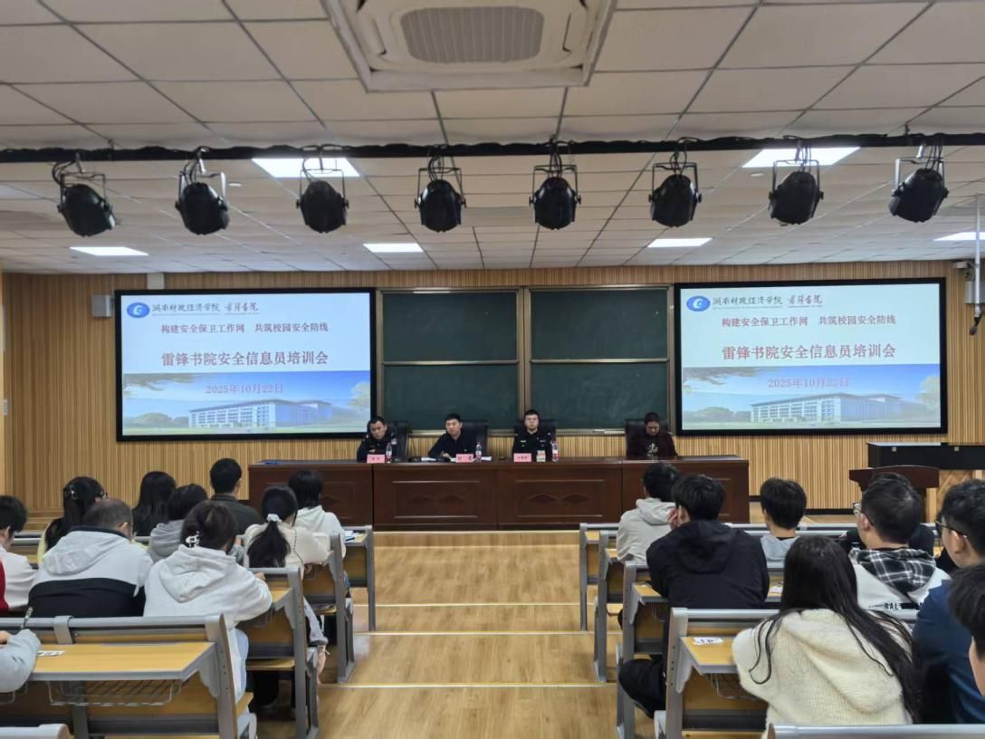 2025年10月22日下午,湖南财政经济学院雷锋书院在至诚楼L1214大礼堂召开新学期安全信息员培训会议,旨在强化校园安全工作。