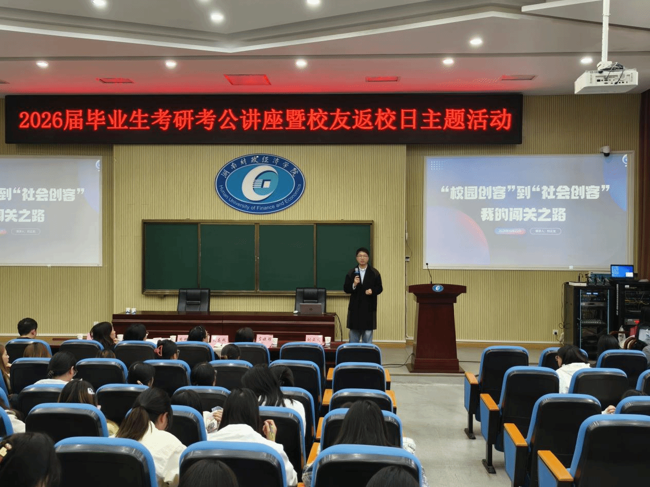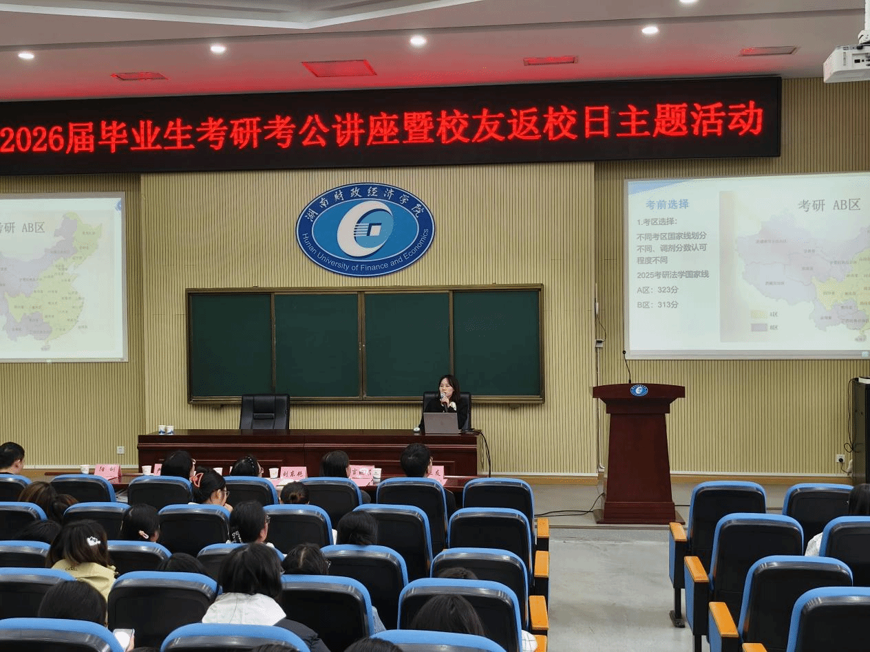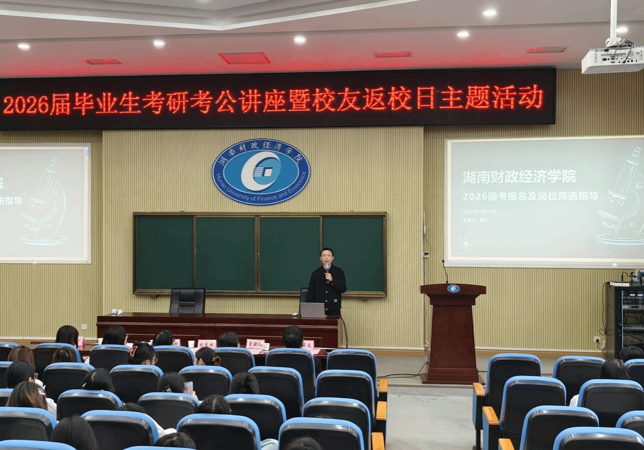 10月22日下午,马克思主义学院在主校区2J02教室成功举办2026届毕业生考研考公讲座暨校友返校日主题活动。院党总支书记刘东艳、学工办主任周雄艳,特邀嘉宾吉晓雅、严家虹、阳钏、刘正友,以及2026届全体毕业生与其他年级学生共同参与了本次活动。活动由肖哲予同学主持。