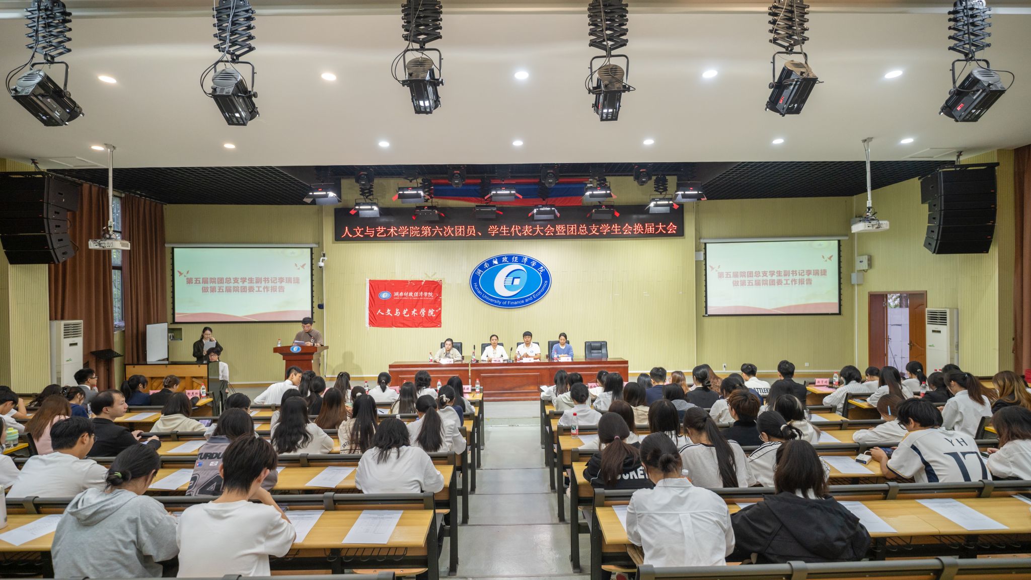 (本网讯)2025年10月15日,湖南财政经济学院人文与艺术学院第六次团员、学生代表大会暨团总支学生会换届大会在第二教学楼2J03学术报告厅举行。院党委副书记杨艳、院团总支书记邹敏、学生第一党支部书记胡斯阳、24级辅导员肖蕾、各学院学生组织负责人及各班级学生代表齐聚现场,共同见证人文与艺术学院团学工作的新起点。