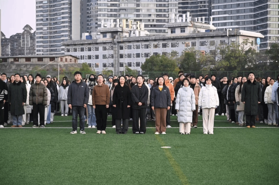 (本网讯)12月15日清晨,人文与艺术学院在学校田径场举行升旗仪式。学院党委副书记杨艳、全体专兼职辅导员、各年级学生齐聚田径场,以庄严的仪式致敬国旗,传承红色基因,厚植爱国情怀,推动爱国主义教育走深走实。