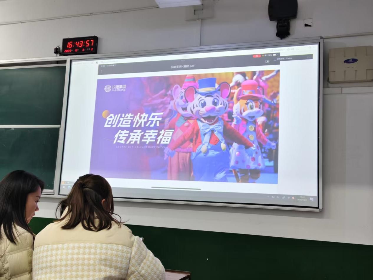 随后,湖南广电芒果研学基地、广州长隆集团有限公司、张家界百龙天梯旅游发展有限公司、长沙晚报校园少年旅游有限责任公司、长沙梅溪湖金茂豪华精选酒店、湖南湘江文化旅游有限公司长沙大王山假日酒店分公司、凤凰古城文化旅游投资股份有限公司等七家企业代表依次进行宣讲,分别从企业发展历程、企业文化、业务板块、实习岗位设置、薪资待遇、晋升通道及留用机会等方面作了详细介绍。