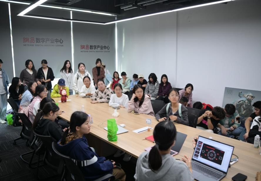在网易(长沙)数字产业中心,CG模型网创始人兼CEO董艳对同学们的到来表示了热烈的欢迎。她从整合数字素材的资源优势,到搭载区块链技术的版权保护机制,再到覆盖模型定制、技术培训的一体化服务,向同学们详细介绍了数字内容产业的运营逻辑。最后,董艳与学生们展开互动交流,针对 “行业人才需求”“职业能力培养” 等问题,她建议大家聚焦 “技术 + 创意” 复合型能力提升,并助力青年创作者对接产业资源。学生们不时举手提问,在与行业大咖的对话中明晰专业学习方向。