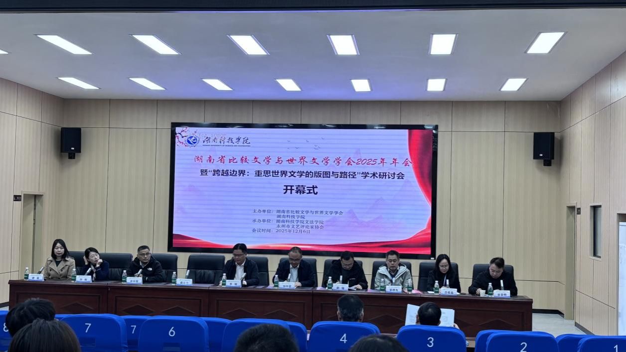 (本网讯)12月6日,湖南省比较文学与世界文学学会2025年年会暨“跨越边界:重思世界文学的版图与路径”学术研讨会在湖南科技学院举行。我校人文与艺术学院汉语言文学专业费振华、王银、李文庭等三位专业教师受邀参会,并围绕相关研究领域作学术发言。