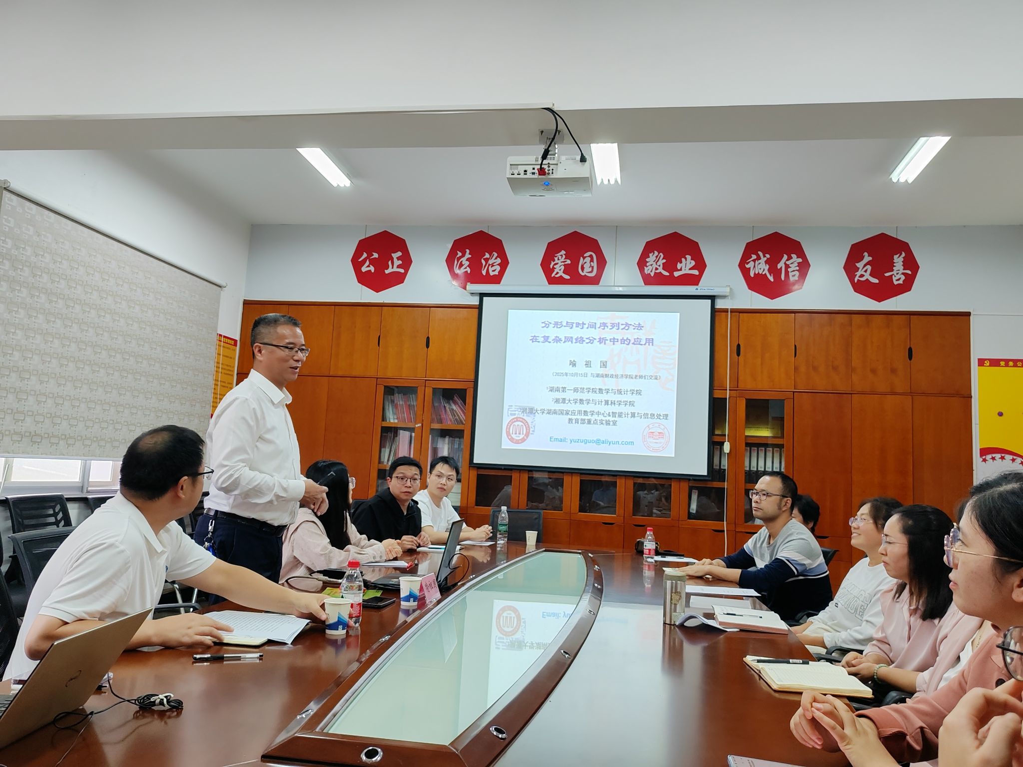 10月31日,数学与统计学院在办公楼809会议室举办国家社会科学基金申报讲座,中南财经政法大学党委副书记杨灿明教授应邀到会指导。杨灿明教授是享受国务院政府特殊津贴专家,第二批国家"万人计划"领军人才,首批"新世纪百千万人才工程"国家级人选,先后主持或参与教育部哲学社会科学研究重大课题攻关项目、国家社会科学基金项目等国家级、省部级课题20余项,发表学术论文160余篇。会议由学院院长尹向飞主持,数学与统计学院主要负责人以及数学与统计学院专任教师、...