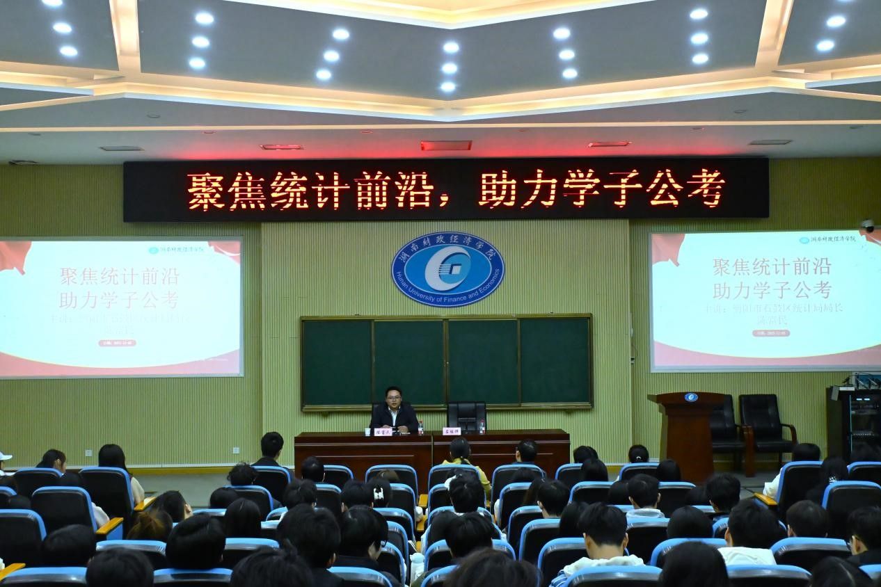 为增强经济统计学专业同学们的专业认知,进一步激发同学们考公的信心与热情。12月5日下午,大数据与统计学院在2J02教室举办“聚焦统计前沿,助力学子公考”主题讲座。衡阳市石鼓区统计局局长陈富民担任主讲,学院党总支书记王萱、副院长吕胜祥及部分专任教师出席活动,2023、2024级经济统计学专业全体学生参会学习。