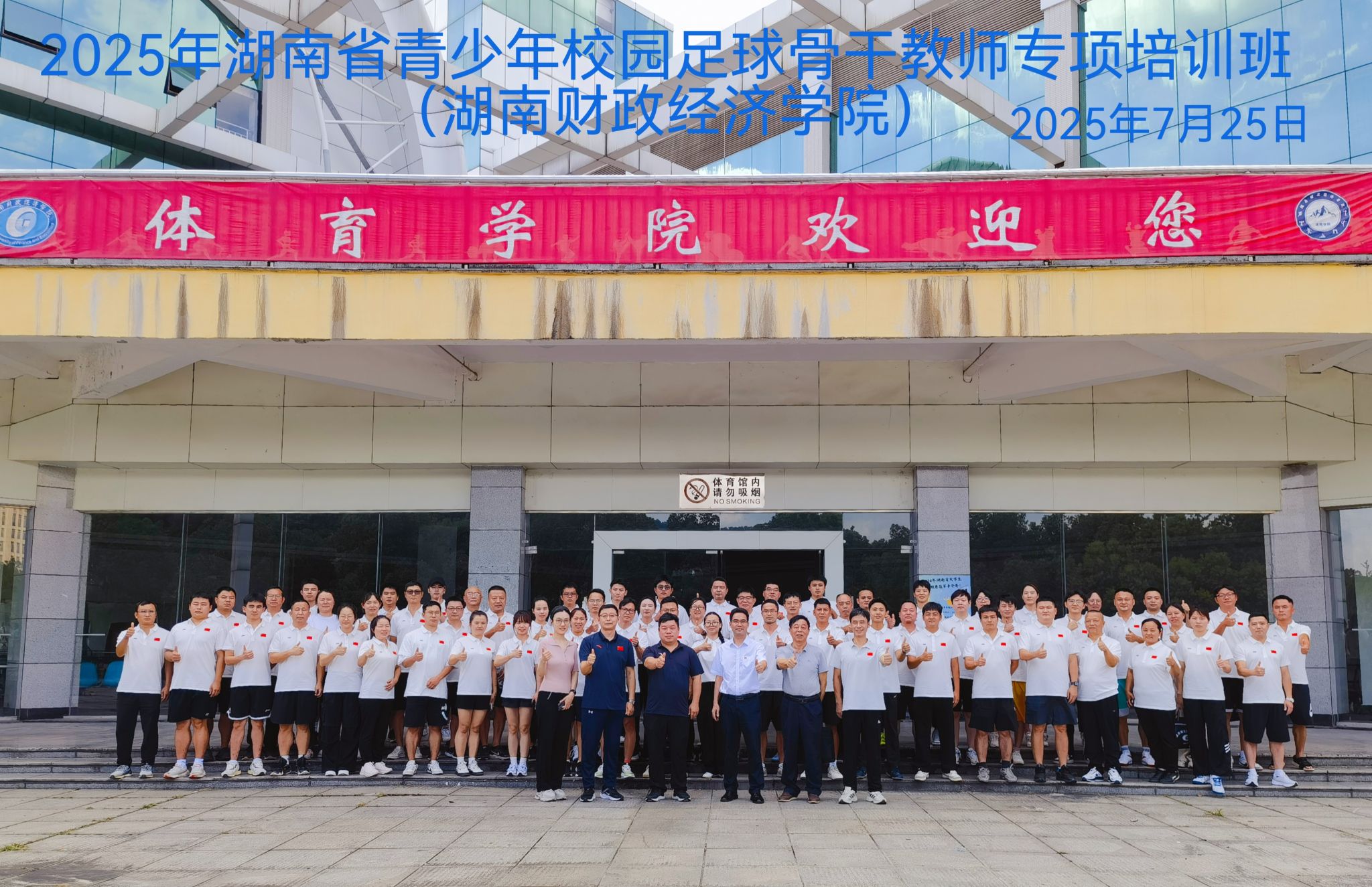 (本网讯)7月25日下午3时,2025年湖南省校园足球骨干教师专项培训班开班仪式在湖南财政经济学院主校区体育馆多媒体招聘室正式拉开帷幕。湖南省教育厅体育卫生与艺术教育处主任张志敏、湖南省校园足球办办公室主任李泽群、湖南财政经济学院校党委副书记苏玲、体育学院院长刘伟、校党政办公室副主任齐立斌出席开幕式。本次培训班旨在进一步提升湖南省校园足球骨干教师的专业素养与教学实践能力,推动全省校园足球事业高质量发展。仪式由体育学院副院长宫梦婷主持。