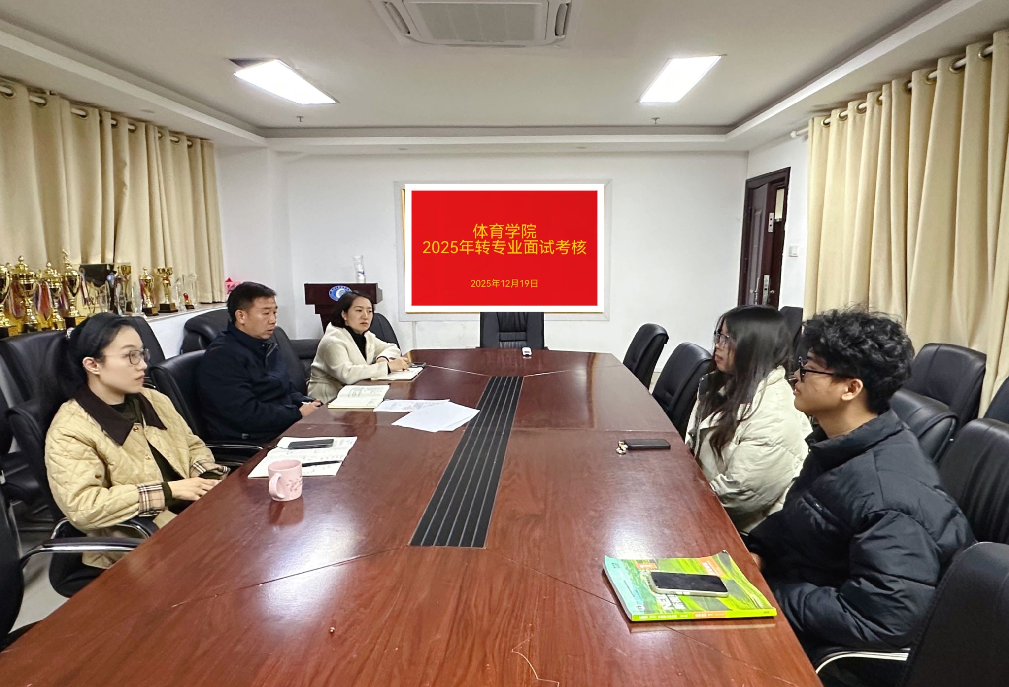 12月19日下午,体育学院在体育馆237会议室组织转专业学生转入面试考核工作,通过严谨规范的考核流程,精准筛选适配体育经济与管理专业的优质人才。
