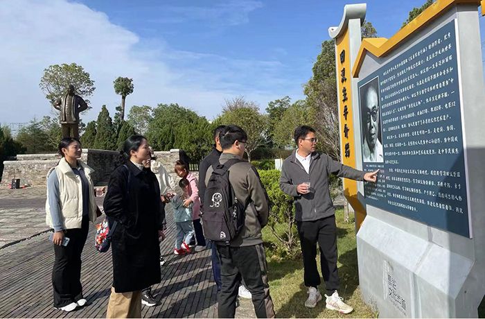 (本网讯)11月17日,为认真落实习近平总书记在文化传承发展座谈会上关于讲好国歌故事的重要指示精神,体育学院直属党支部前往田汉文化园,开展“滋养忠诚初心 筑牢新的长城”主题党日活动。院长刘伟、副院长齐立斌、直属党支部副书记李映泉以及全体教职工党员参加活动。