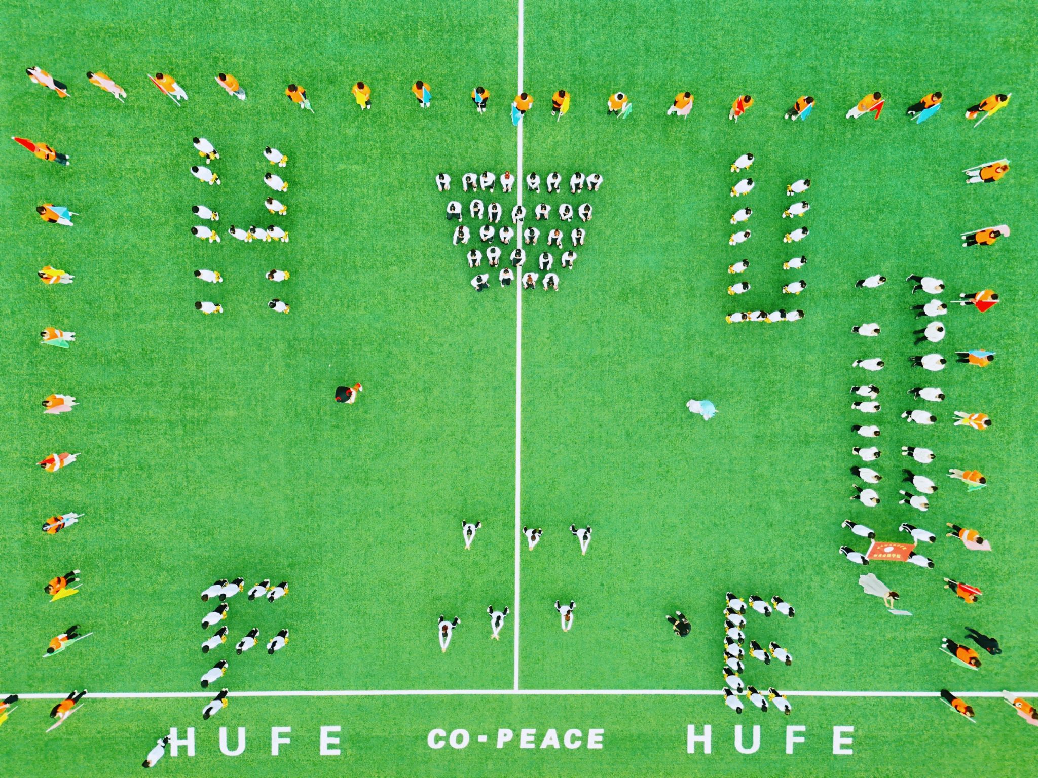 表演环节更是亮点频出,传统舞狮与现代街舞同台竞技,舞狮者身姿矫健,将狮子的灵动与威武展现得淋漓尽致;街舞少年们活力四射,用动感的节奏和酷炫的动作点燃全场。传统与时尚在此完美交融,形成一场震撼的视听交响。学院方阵展示结束后,由我校2001届校友杨志君提供的无人机方阵破云而来,无人机下方悬挂着“享受乐趣 增强体质 健全人格 锤炼意志”“专业强基 科技赋能 人文铸魂”“祝母校2025年校运会圆满成功”三条横幅,在空中组成璀璨的方阵。这场别出心裁的表演不仅点燃了全场师生的热情,更折射出学校在群众体育、民族项目及体育教学改革方面取得的丰硕成果,生动体现了“以体育人”的实践创新。
