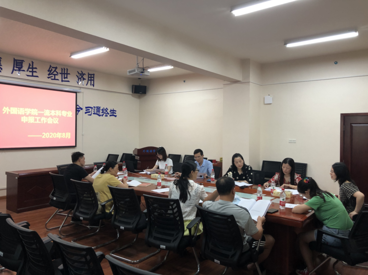 汪小英传达了学校下发的《关于组织申报2020年省、校两级一流本科专业建设点的通知》文件精神,就一流本科专业申报的时间节点及申报要求作了简单介绍,鼓励外国语学院英语、商务英语、翻译、日语四个专业都积极申报校级一流本科专业。