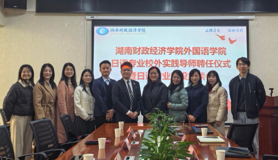 (本网讯)12月31日上午,外国语学院在315会议室举行“湖南财政经济学院外国语学院日语专业校外实践导师聘任仪式暨日语专业建设座谈会”。本次活动旨在进一步加强日语专业与实践基地的协同联动,深化专业建设与人才培养改革,推动日语专业转型发展。