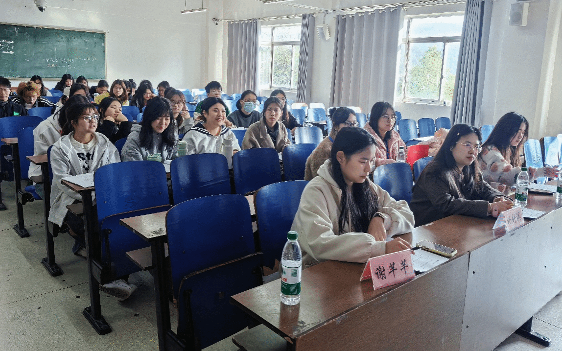 (本网讯)12月3日下午,外国语学院“声入人心,语你共鸣”双百工程经典诵读大赛在三教3109教室成功举办。本次大赛共八组选手参加,第一党支部书记杨舒淇、团学会执行主席谢芊芊、团总支副书记何璨担任评委,文体部扶润枝、朱彦琪担任主持人。