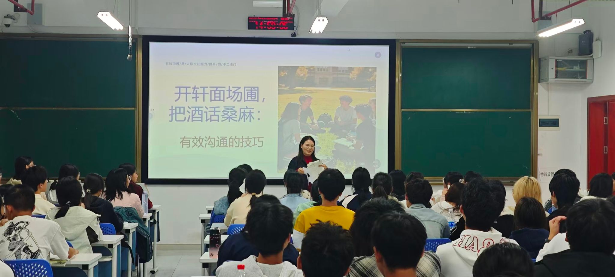 课程围绕“积极倾听”、“有效表达”与“沟通整合”三大核心模块展开。曾鹃老师通过破冰游戏迅速营造开放氛围,结合典型案例解析沟通中的常见误区,借助角色扮演引导学生亲身体验不同沟通方式的实践效果,并援引经典心理学研究为沟通策略提供理论支持。整堂课教学设计环环相扣,教学方法多元灵活,实现了知识传授、能力培养与价值引导的有机统一。