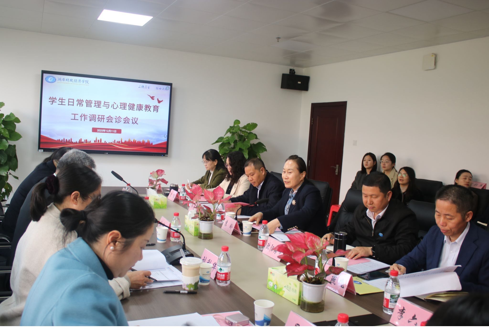 会上,外国语学院、财政金融学院党委书记分别汇报了本院学生日常管理与心理健康教育工作的开展情况与改进举措。学生工作部部长欧阳海峰围绕“思想引领铸魂、日常管理筑基、心理健康护航、队伍建设赋能”四个方面,系统介绍了我校在学生日常管理与心理健康教育方面的整体进展、特色做法、取得成效、现存问题及整改措施。