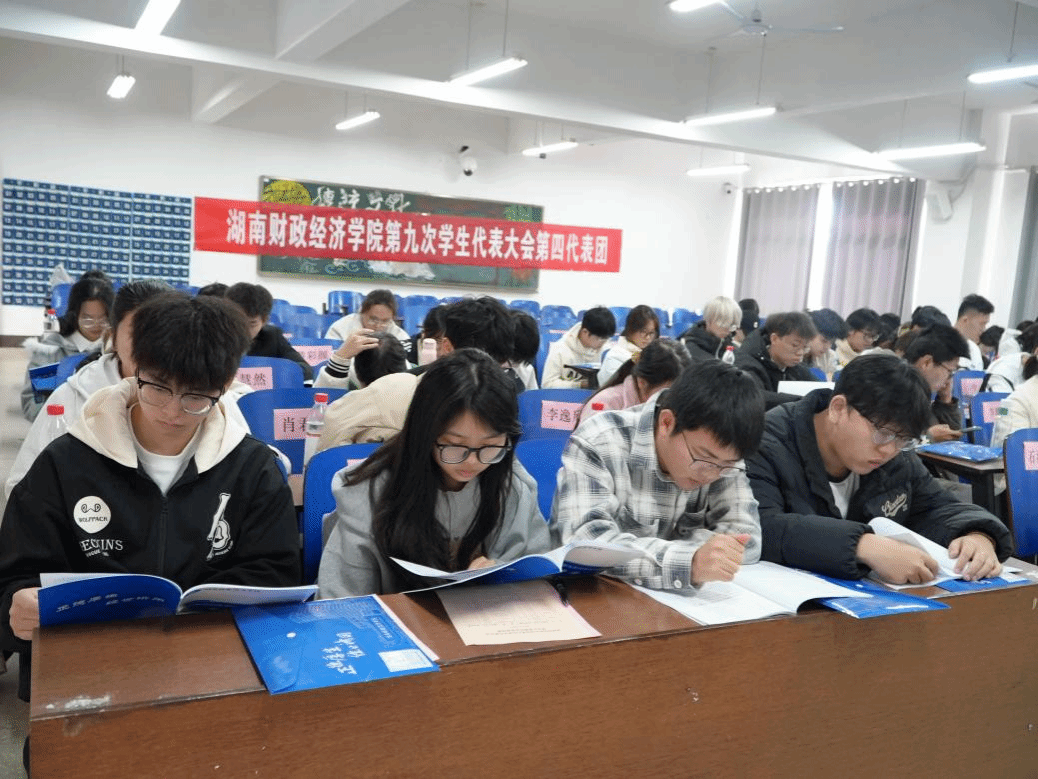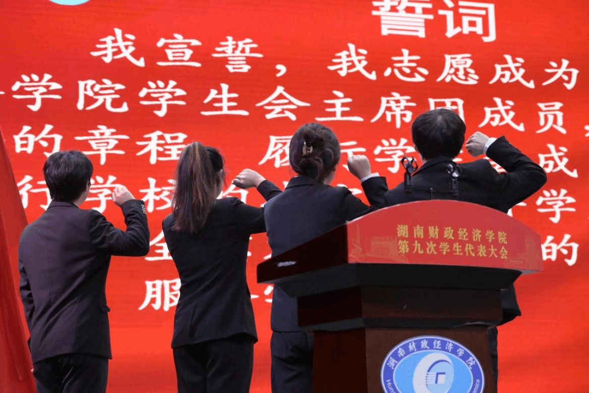 钟博康、彭炀、胡佳怡、黎泽宇四名同学当选为湖南财政经济学院第九届学生会主席团成员。