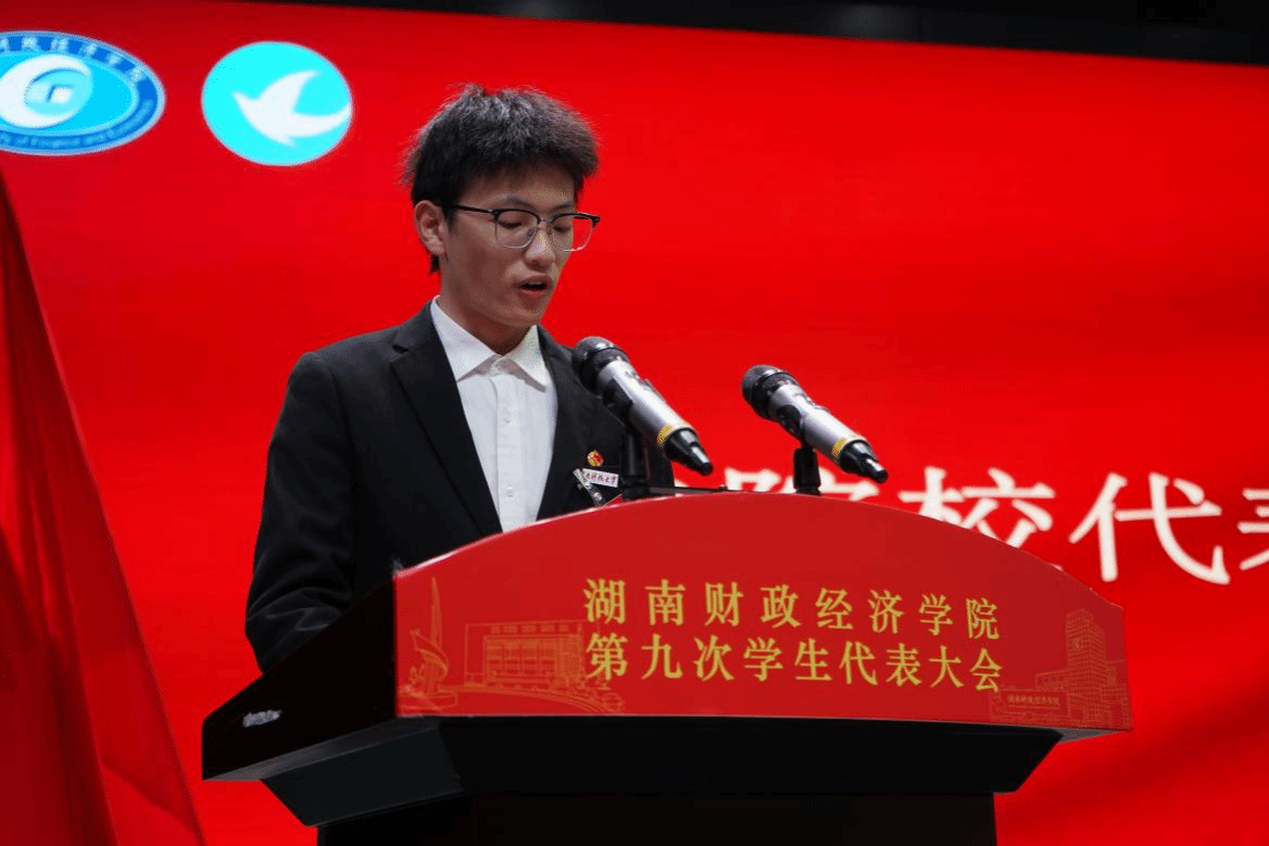 钟博康向大会作题为《铸牢青春信仰,笃行服务初心,团结引领广大湖财青年以矢志力行在强国复兴新征程上书写青春华章》的工作报告,对我校学生会过去一年所开展的各项工作做系统回顾,并对未来学生会开展工作的思路作进一步介绍。
