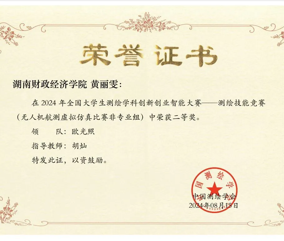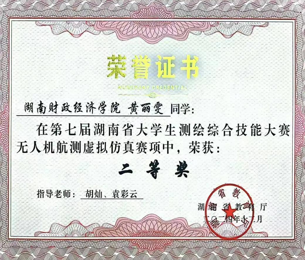 她的努力与坚持换来了累累硕果,全国大学生测绘技能竞赛无人机赛项全国二等奖、湖南省大学生测绘技能竞赛二等奖、全国大学生周培源力学竞赛二等奖、全国大学生“挑战杯”比赛三等奖等几十项荣誉,都是她奋斗的见证。