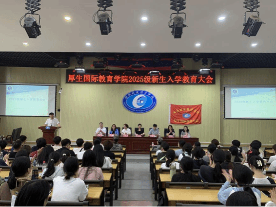 金秋送爽,丹桂飘香。近日,湖南财政经济学院厚生国际教育学院2025级新生入学教育大会在2J03教室隆重举行。此次大会既是新生开启大学旅程的“第一课”,也是学院传递育人理念、凝聚奋进力量的重要契机。大会由学院团总支书记兼新生辅导员汤雷主持,学院全体教师与2025级全体新生齐聚一堂,共同开启大学生活的崭新篇章。