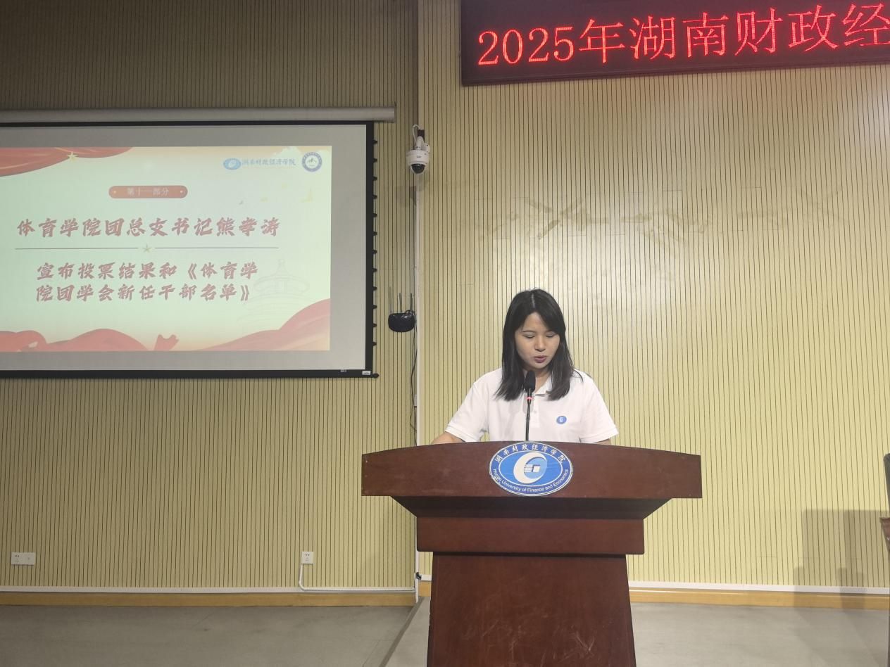 随后,候选人们依次按照选举流程,进行上台汇报演讲。由熊孝涛宣读体育学院团学会新任干部结果。