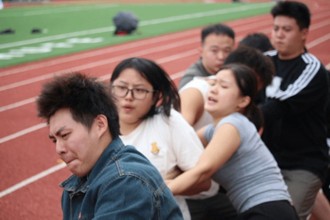 赛事环节亮点纷呈。“同心协力,共赴胜利”中,双人绑腿竞速,步伐协同间诠释默契;“紧密配合,冲破险阻”里,八人跳绳团队争分夺秒,节奏与力量交织;“擂鼓助威,士气昂扬”时,鼓绳操控精准颠球,专注凝聚团队合力;“凝聚力量,力拔山河”中,拔河队伍奋力拼搏,标记线的移动见证集体意志。裁判严守公平准则,工作人员保障赛事顺畅,全程记录竞技瞬间。