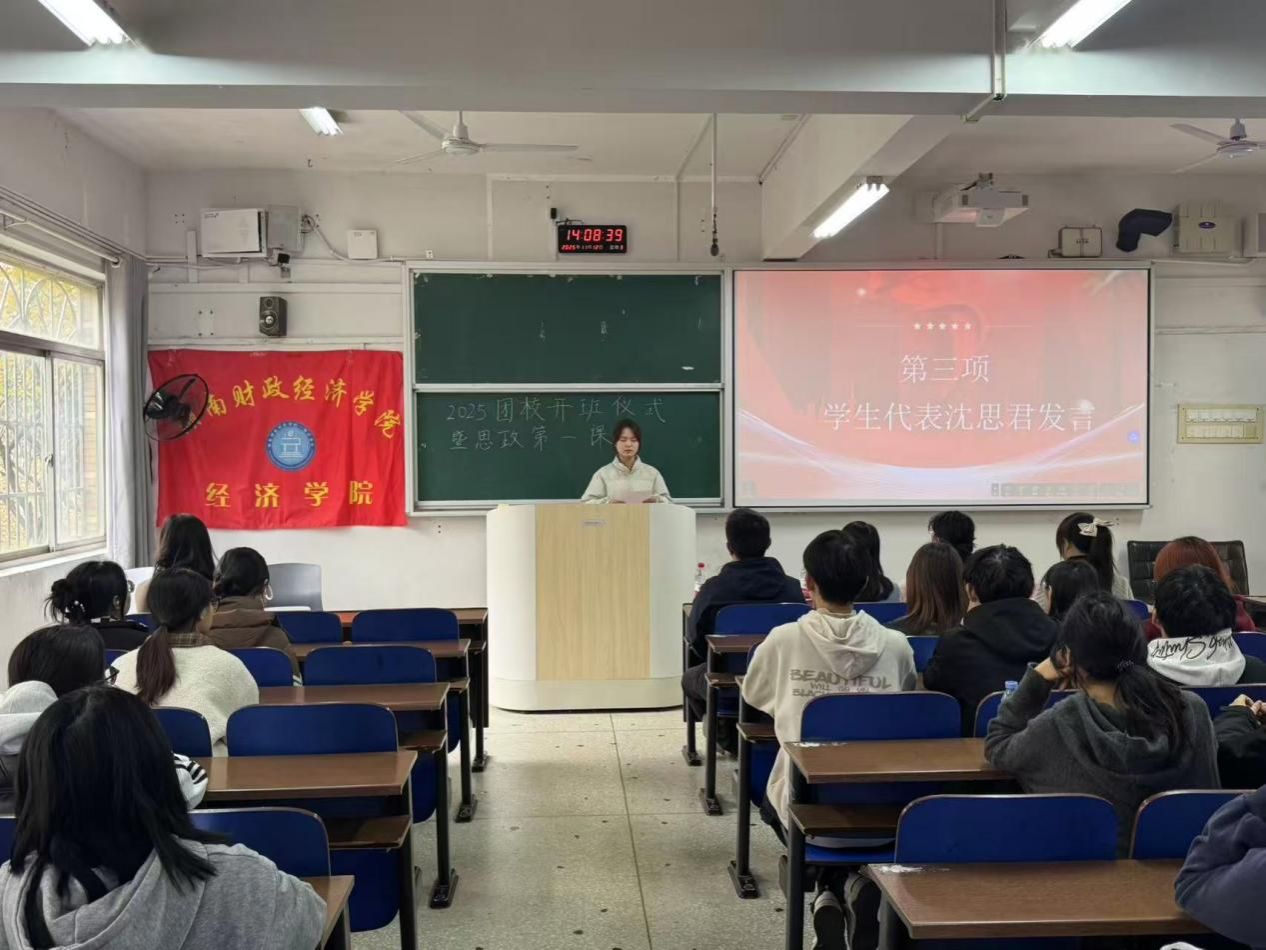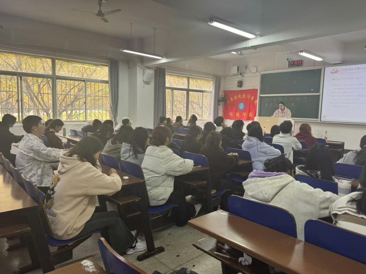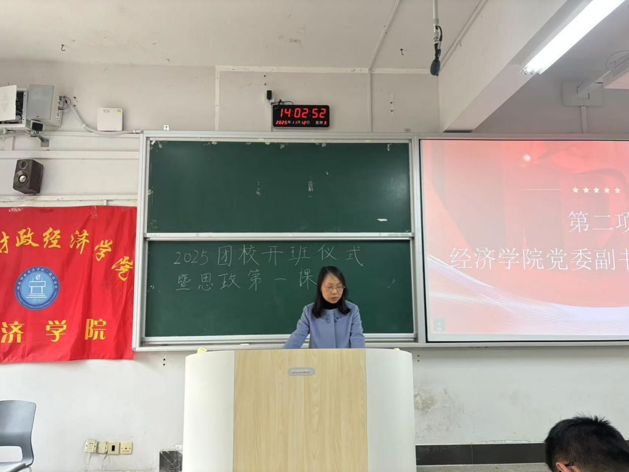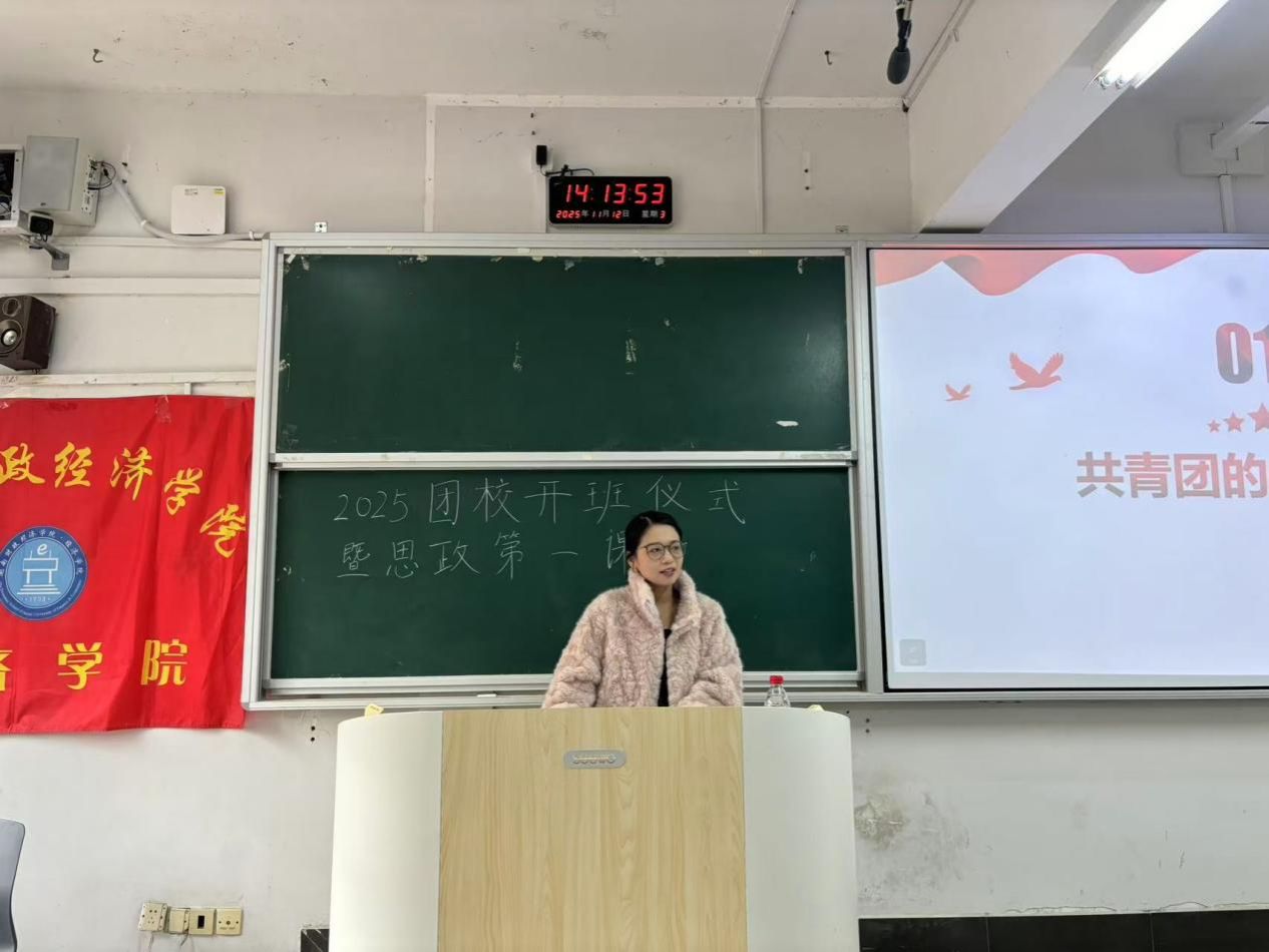 11月12日下午,我校经济学院于主校区3101教室举行2025年下半年团校基础班开班仪式暨思政第一课。参加本次仪式的有经济学院党委副书记刘英、学工负责人谢龙、团总支书记宋赛男、学生支部书记欧璐以及经济学院团校全体成员。