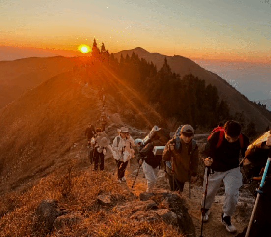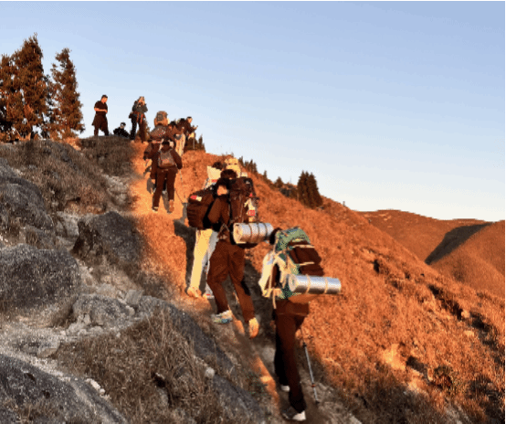 两天一夜的行程中,学子们沿正穿路线前行:从沈子村出发,历经19.36公里路程、1505米累计爬升,途经九龙、铁蹄峰,最终登顶海拔1918.3米的金顶。白日里,大家踏过峰崖、草甸,饱览多样地貌;夜幕下,协作搭建帐篷,分享旅途感悟;清晨时分,共赴金顶守候日出,见证云海与霞光交织的美景。徒步不仅是体力与意志的考验,更成为团队协作的“练兵场”。