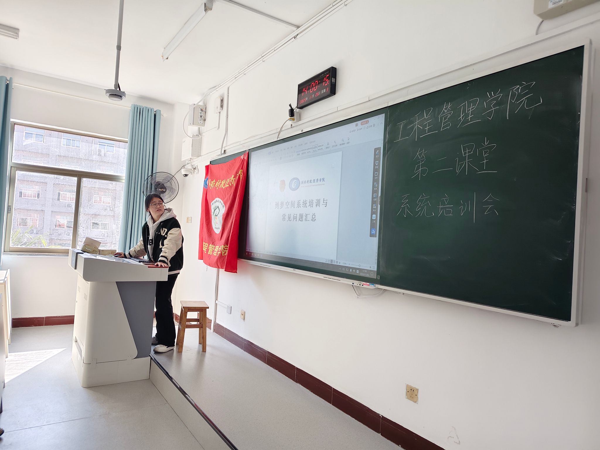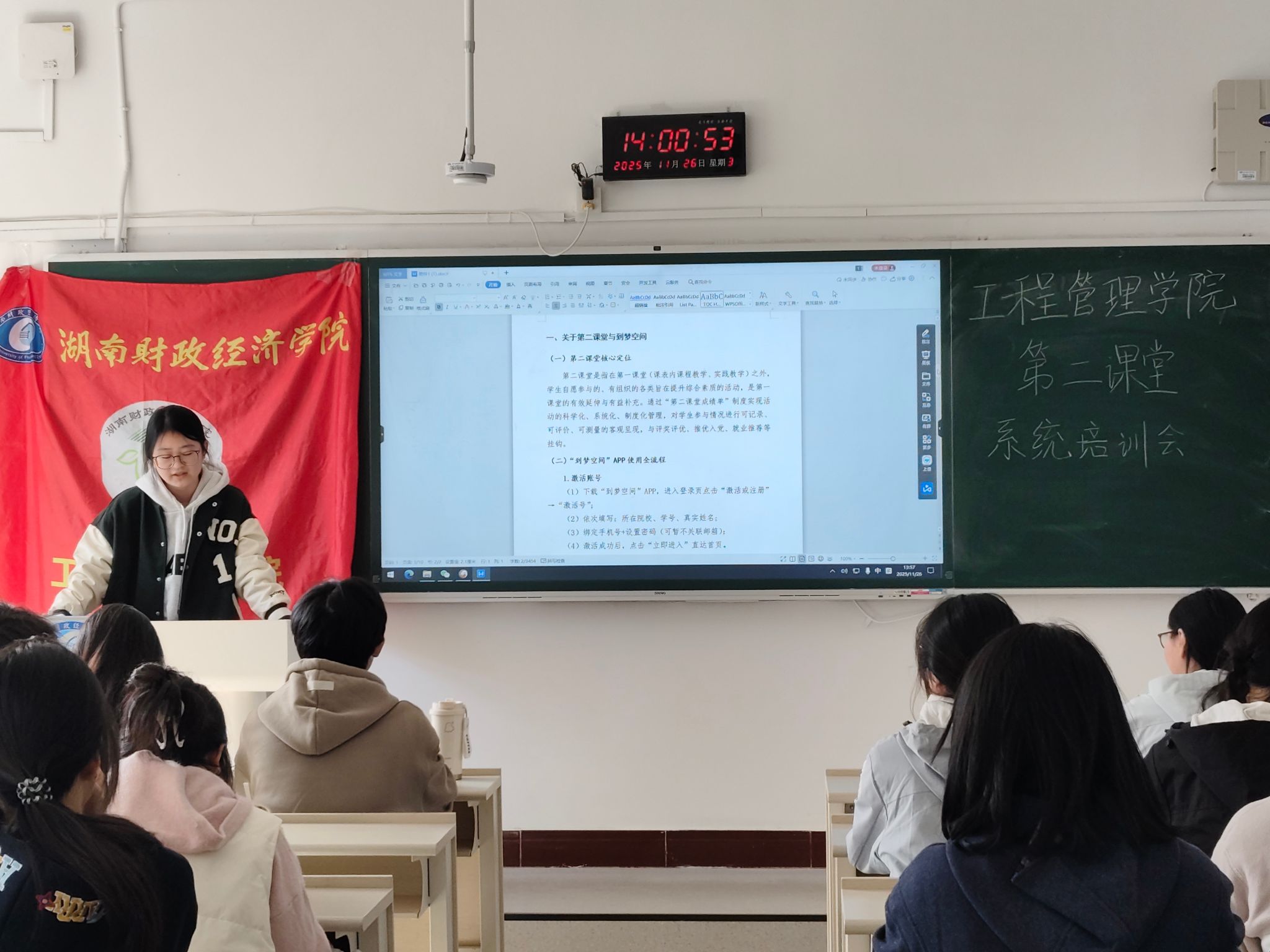 为推进第二课堂活动规范化管理,提升学生参与第二课堂的便捷性与效率,11月26日下午,湖南财政经济学院工程管理学院于2215开展第二课堂系统培训会,学院各班级班长参与本次培训。