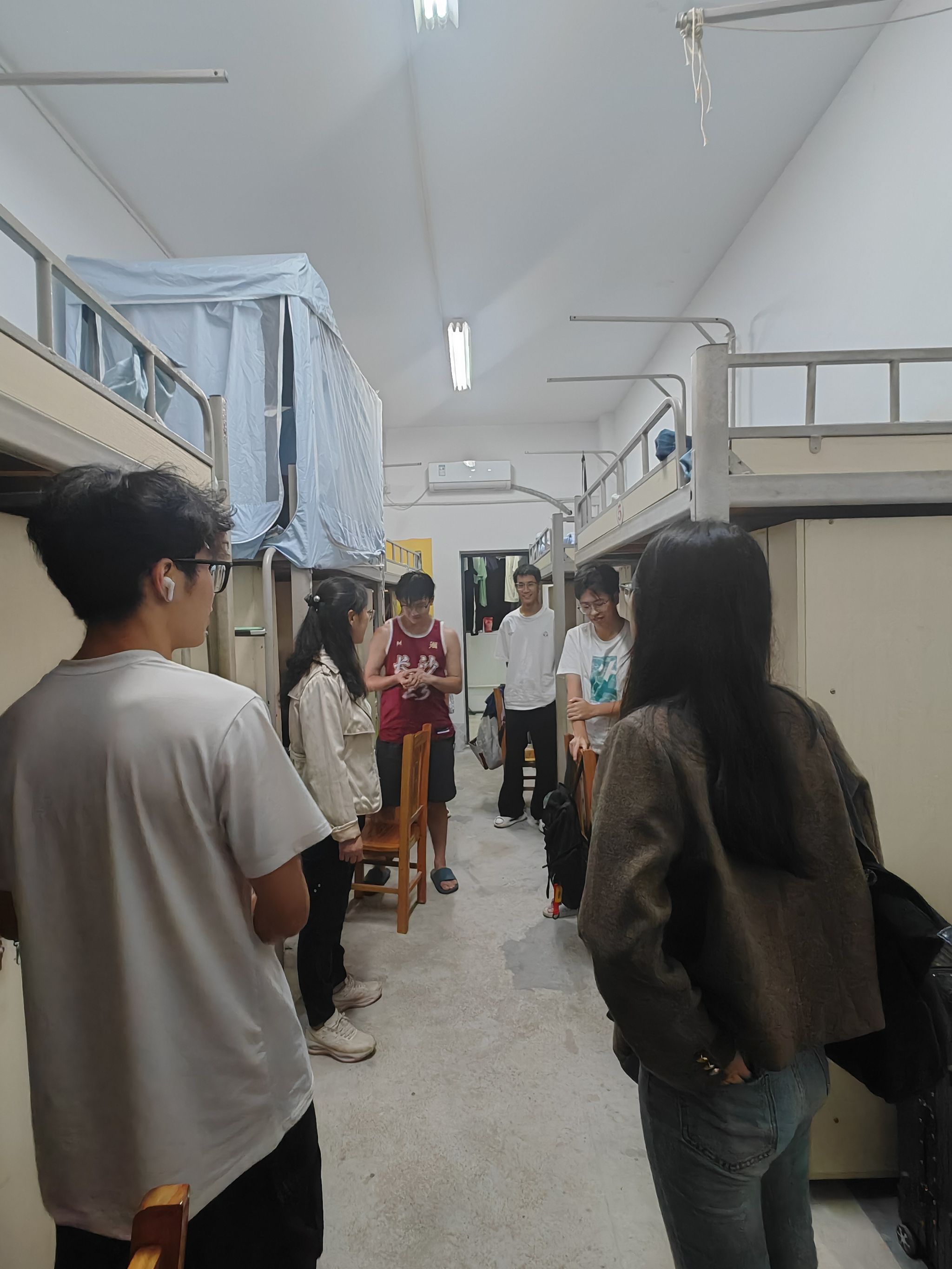 在消防安全排查环节,检查组重点排查宿舍是否存在私拉乱接电线、使用大功率违规电器等现象。李映泉强调:“宿舍是大家在校生活的‘小家’,消防安全无小事,全体同学要时刻紧绷安全弦,自觉抵制违规用电行为。” 唐雄伟指出,宿舍卫生与安全用电不仅关系同学们的居住体验,更与身心健康、学习状态紧密相关,大家要共同营造舒适的宿舍环境和良好的学习氛围。全体辅导员针对检查发现的问题做好记录,逐一反馈并指导整改。