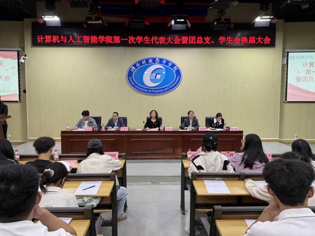 大会在庄严的国歌声中拉开帷幕。会上,唐雄伟宣读了《院党委同意召开湖南财政经济学院计算机与人工智能学院共青团代表大会的批复》和《院党委同意召开湖南财政经济学院计算机与人工智能学院学生代表大会的批复》,李雨希宣读了《校团委同意召开湖南财政经济学院计算机与人工智能学院共青团代表大会的批复》和《校学生会同意召开湖南财政经济学院计算机与人工智能学院学生代表大会的批复》。李映泉在开幕辞中充分肯定了过去一年学院在转型发展中所取得的成就,并对青年学子提出三点希望:以“信仰之光”筑牢思想根基,以“创新之翼”驱动成长进步,以“实干之笔”书写青春答卷。她强调,团学组织是学院联系广大同学的重要纽带,学生干部应率先垂范,锤炼本领,担当作为,在服务学院与学生发展中发挥模范作用。