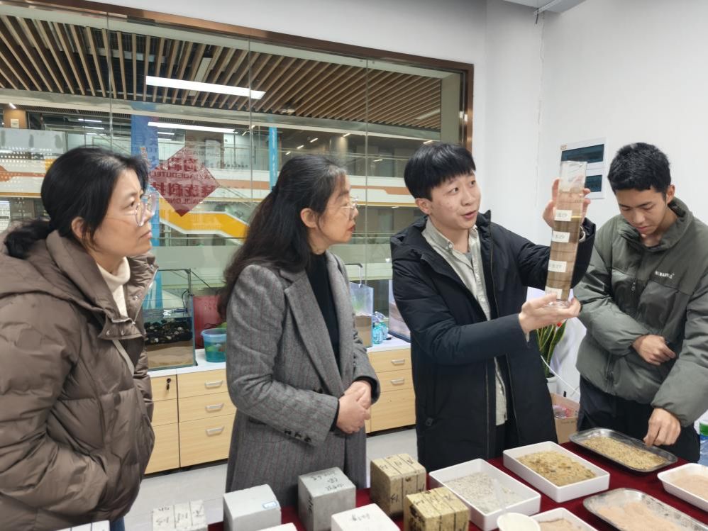 随后,唐雄伟一行走访了长沙青鹏材料有限公司—一家由湖南大学博士团队创立,集科技研发、生产、销售于一体的综合型企业。公司聚焦刚性建筑防水与沙漠生态修复(柔性防渗)两大领域,已形成完整的沙漠治理解决方案。企业负责人简要介绍了公司基本情况与发展现状,现场演示了产品防水与应用于沙漠治理的相关技术原理。双方围绕学生实习、项目协作与人才培养展开了交流。企业高度认可学院在人才培养方面的成果,并期待在无人机、人工智能等领域开展相关合作,共同培育复合型人才。
