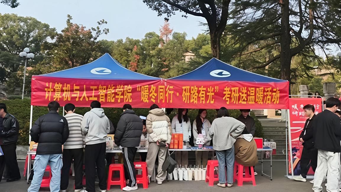 为帮助考研学子缓解压力、坚定信心,以最佳状态迎接考试,12月10日,计算机与人工智能学院在主校区大礼堂前举办了“暖冬同行 研路有光”考研心理调适暨考研慰问活动。学院党委副书记唐雄伟、学工办副主任陈慧、团总支书记李雨希、毕业班辅导员、教工党支部党员代表及团学会干部参加活动,共同为备战学子加油鼓劲。